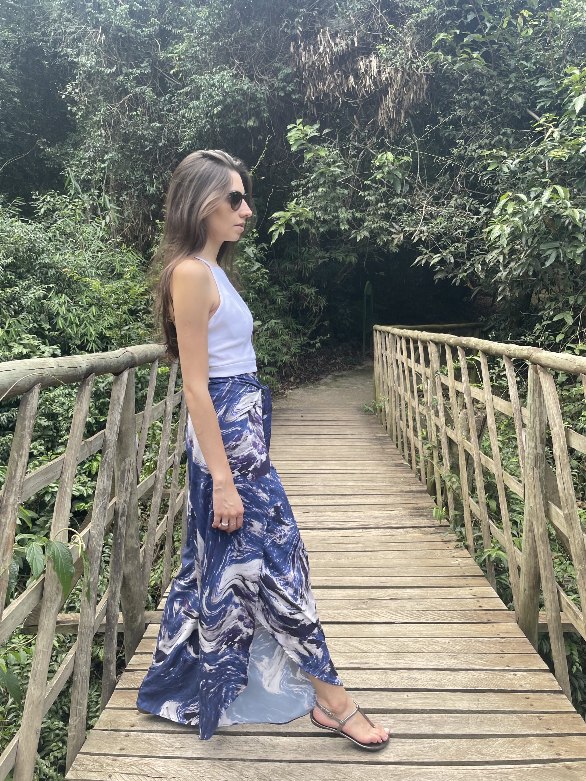 A Calça Lenço ZIN, confeccionada em tecido toque de seda, é uma peça confortável, elegante e com caimento super leve. Possui modelagem reta, transpassada, com amarração frontal e fenda nas laterais. Peça chave para todos os momentos por ser linda e super versátil!